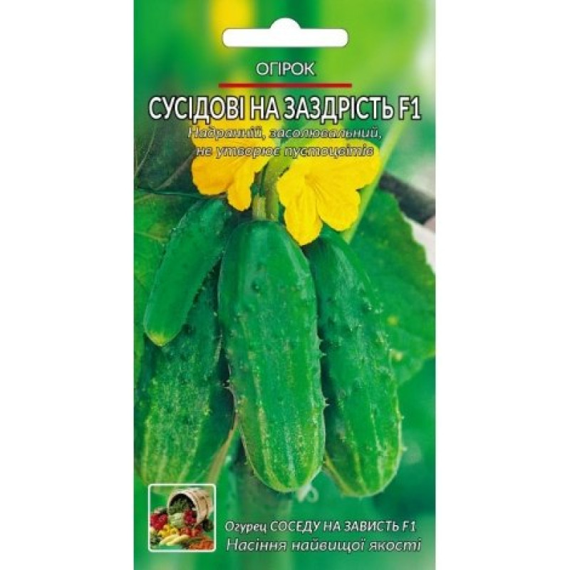 Дуже ранній, переважно жіночий тип. Зеленець витягнутої форми, з грубою бугристістю поверхності, без гіркоти, соління ніжне, хрустке. Період від повноцінної розсади до початку плодоношення - 43-50 днів. Довжина плода 8-12 см. Маса плода 102-135 г.