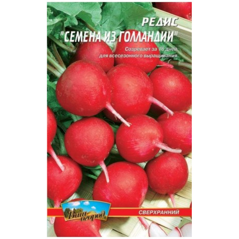 Насіння з Нідерландів. Редис посіяний ранньою весною, починаючи з середини квітня, дає врожай в кілька термінів за 10-12 днів, літні посіви проводиться наприкінці липня -на початку серпня для використання осені. Сівба проводиться в канавках глибиною 2-2,5 см на відстані 10-12 см один від одного. Холодна стійка культура
