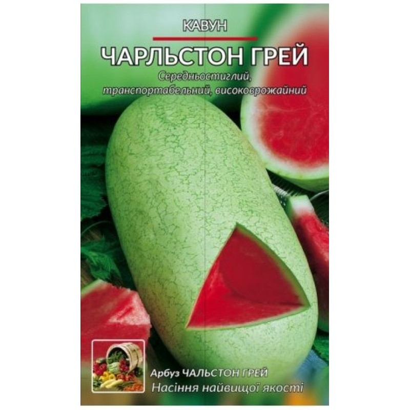 Сорт середньостиглий, період вегетації від розсади до технічної стиглості 75-95 днів. М 'якоть хрустка, темно-червона, без прожилок, дуже солодка, соковита і ароматні. Плоди великі, світло-зеленого кольору з темно-зеленими прожилками, овально продовгувастої форми, масою 10-12 кг.