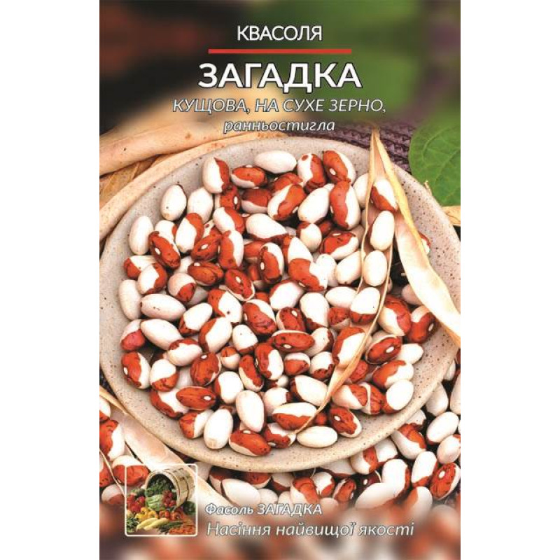 Середньостиглый сорт, добре розгалуженний кущ понад 50 см, опори не потребуе, Зерновий сорт, добре зберігаеться кілька років, забарвлення зерна червоно біла цяточка, має добрі смакові якості, використовуеться кулінарії,