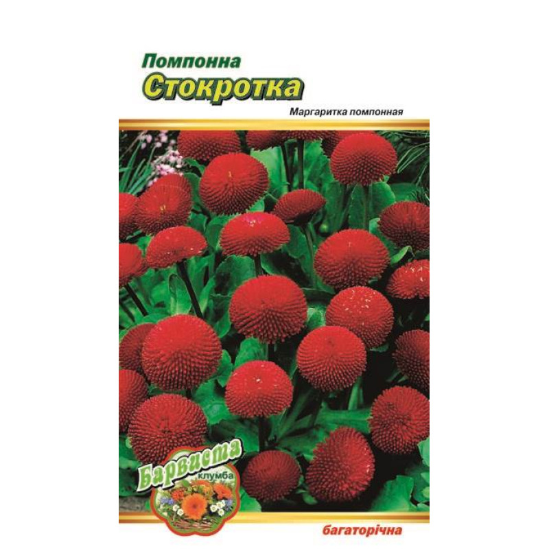 Багаторічна рослина, висотою 10-20см. Вирощується як дворічник. Суцвіття – кошики, поодинокі, махрові, діаметром 2-6см, малиново-червоного кольору. Висівають насіння на розсаду у травні-червні, на постійне місце пересаджують восени. Рясне та дружнє цвітіння маргариток відбувається на наступний рік з травня по серпень. Чудово росте на сонячних місцях, та у затінку. Використовують для оформлення балконів, терас, клумб, рабаток та газонів.