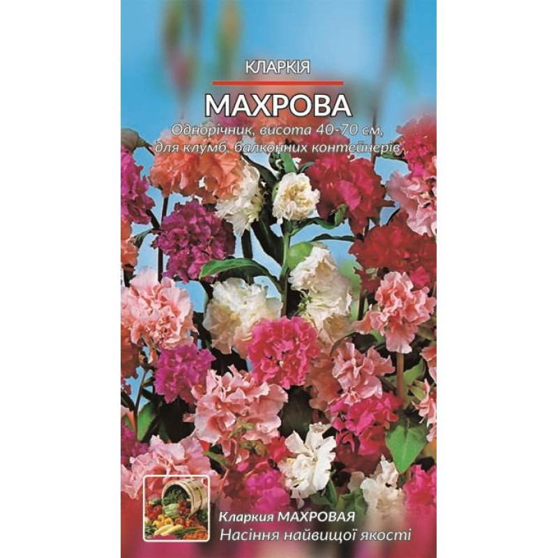 Опис товаруОднорічна рослина. Стебла тонкі, міцні, висотою 40-70см. Махрові квітки червоного, рожевого, білого і блакитного забарвлення, діаметром близько 5 см, розташовані в пазухах листків, і нагадують за формою маленькі трояндочки. Вирощується висівом насіння у відкритий грунт в травні-червні або через розсаду для більш раннього цвітіння в квітні-травні. Цвіте рясно з липня по вересень. Використовується для оформлення клумб, рабаток та балконних контейнерів.