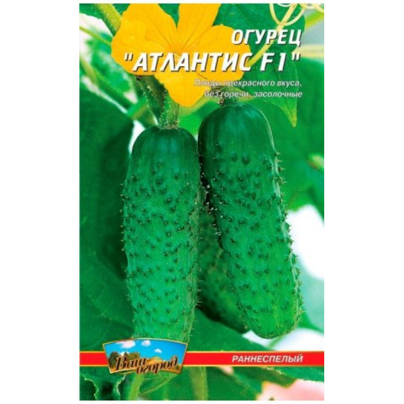 Ранньостиглий високоврожайний гібрид з переважно жіночим типом цвітіння. Прибирання розпочнеться через 45 днів після посіву. Плоди чудового смаку, повністю без гіркоти, використовуються для консервування та соління. Добре зберігаються і транспортуються.